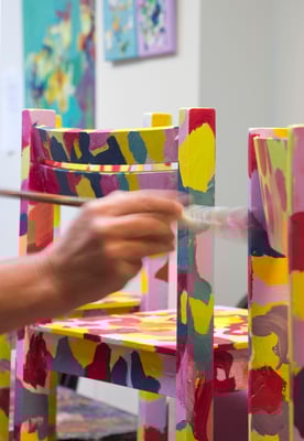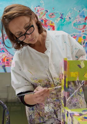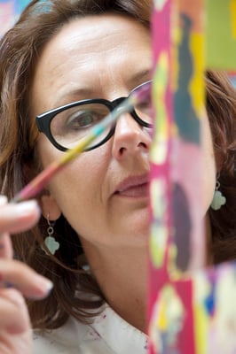 Mijn schilderijen mogen, moeten, eerst mislukken om er vervolgens weer een eenheid van te maken, gebalanceerde chaos en kleurrijke imperfecties zijn de uiteindelijke resultaten”,